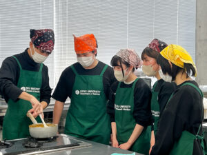 【医療保健学部 栄養学科】焼きまんじゅう作りと動画制作に挑戦!