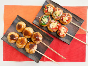 <完成した焼きまんじゅう。ピザ風アレンジもおいしくできあがりました。>