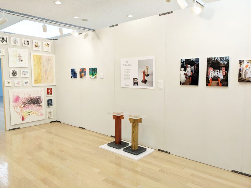 研究内容の発表、意見交換と交流が行われる交流会でしたが、短期大学部 アート・デザイン学科は研究室展として、作品発表を行いました。