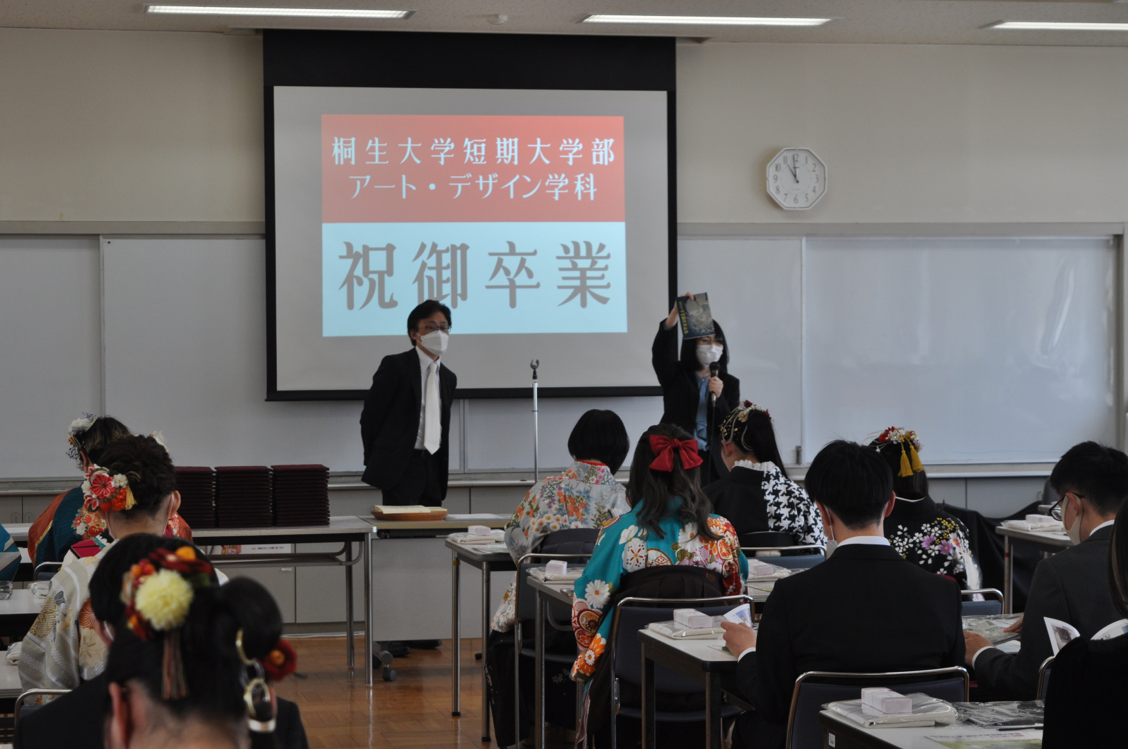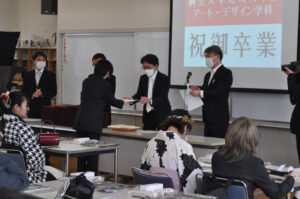 ホールでの学位授与式の後は、短期大学部 アート・デザイン学科の学生は、