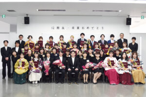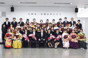 最後に集合写真を撮りました。学生の皆さん、保護者の皆様、おめでとうございます。