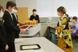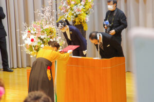 山﨑学長より、各学科の総代が学位記を授与されました。