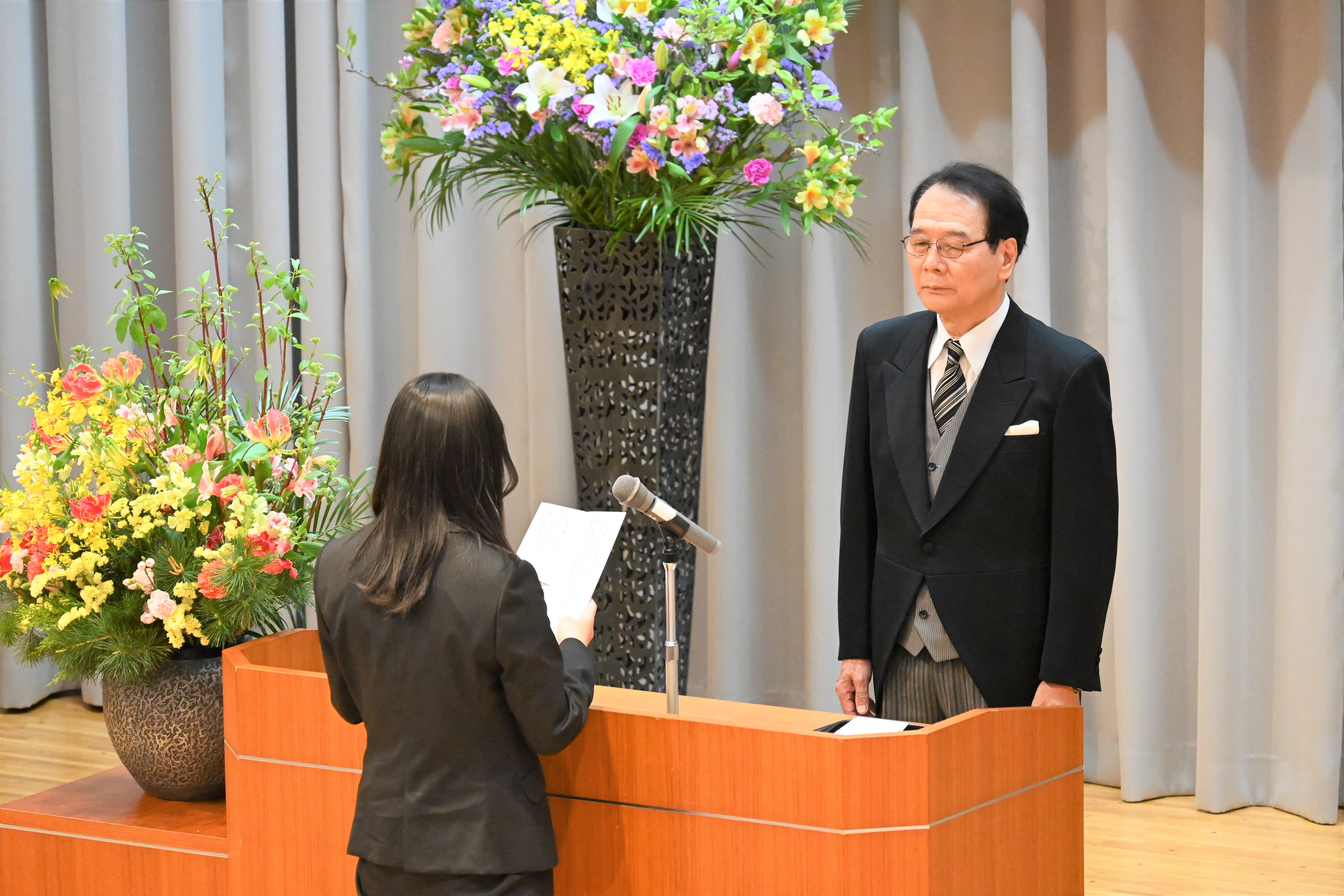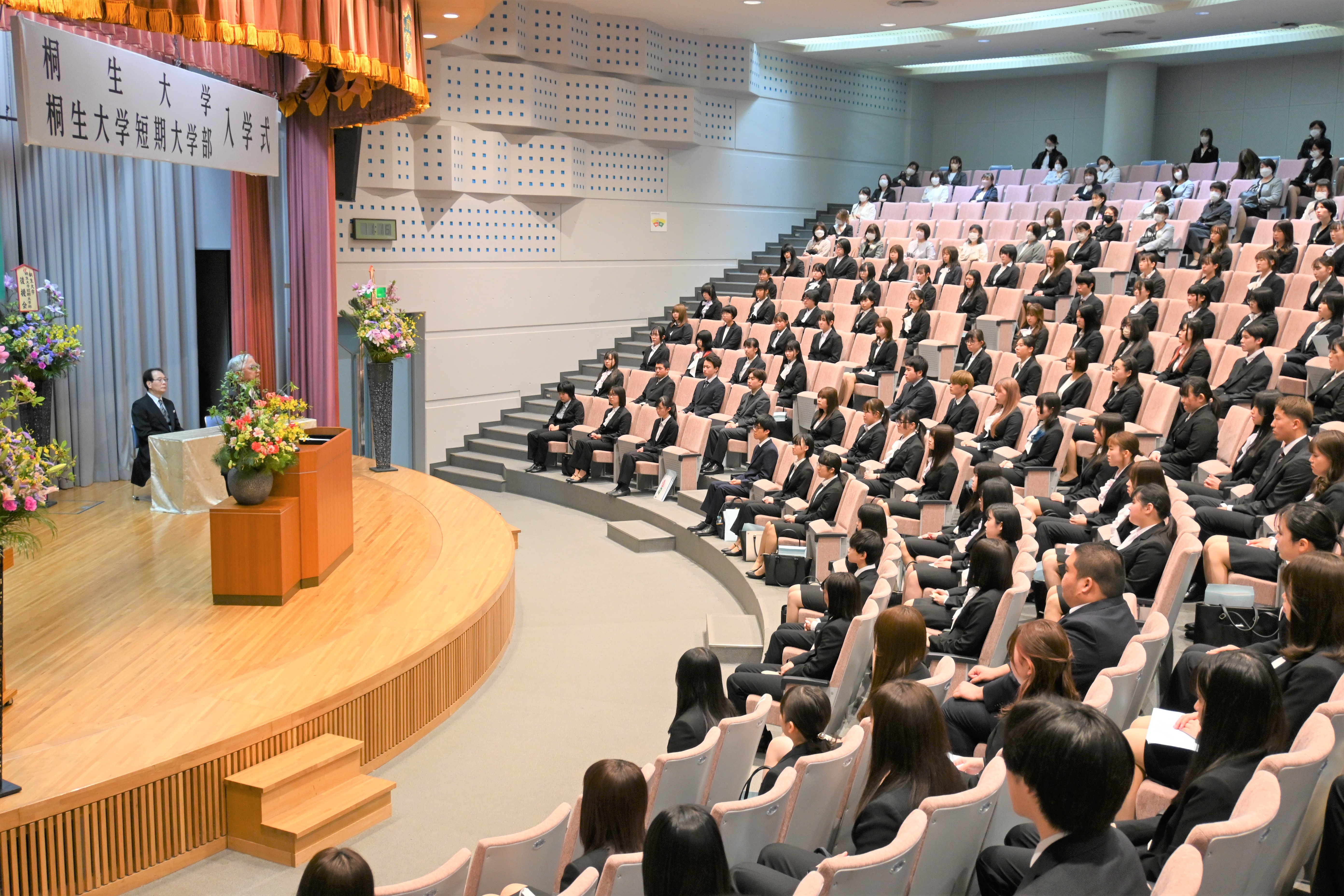 新型コロナウイルス感染拡大防止のため、午前(医療保健学部 看護学科、生活科学科)と午後(医療保健学部 栄養学科、短期大学部 アート・デザイン学科、別科助産専攻)の二部制に分かれて執り行いました。