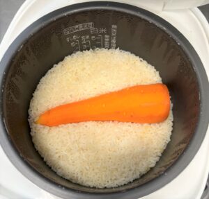 献立は、炊き込みごはん3種(丸ごとにんじん炊き込みごはん、丸ごとトマト炊き込みごはん、とうもろこしと枝豆の炊き込みごはん)、
