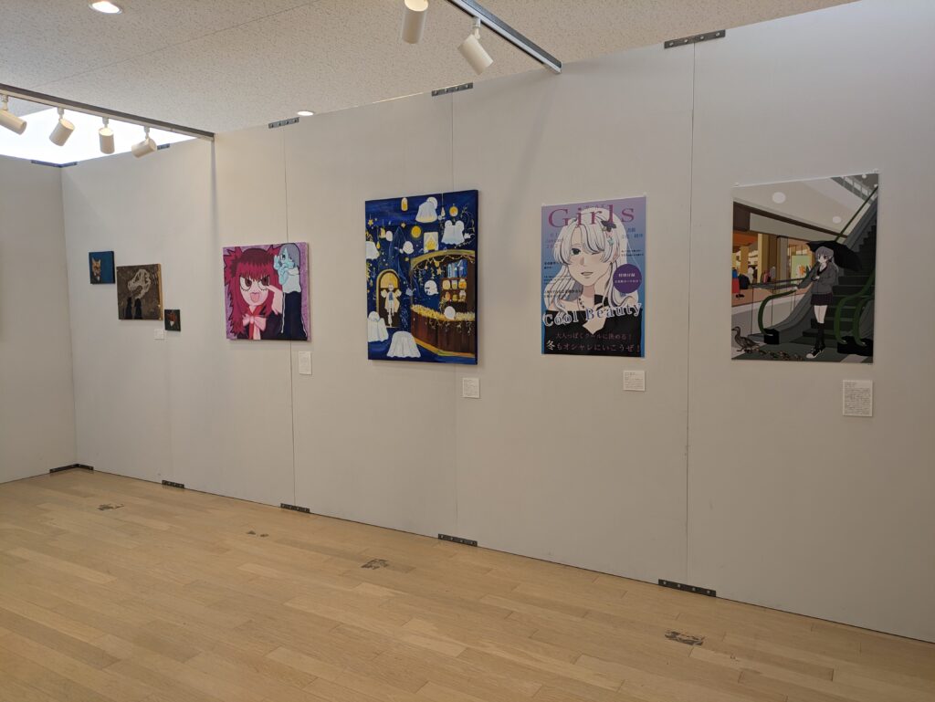 油絵、アクリル、CGなど、1年間学んだことを発揮した、バラエティ豊かな展示となりました。