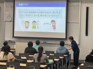 二人組になってのロールプレイングでは、無表情で話しを聞いてもらう場合と、