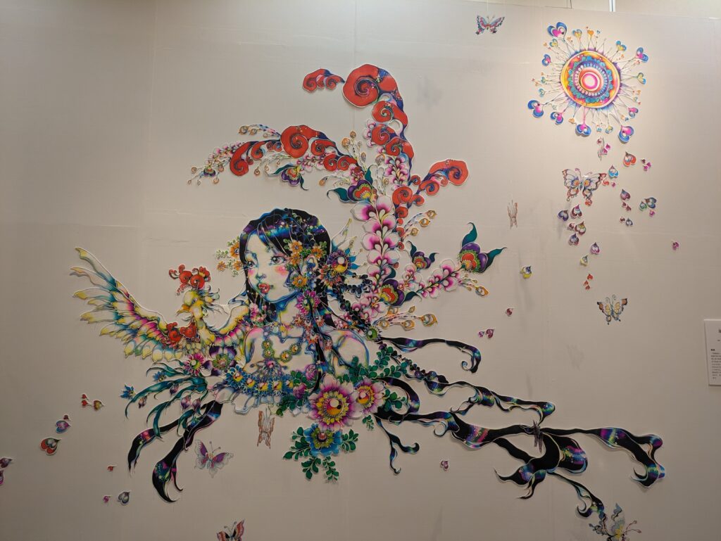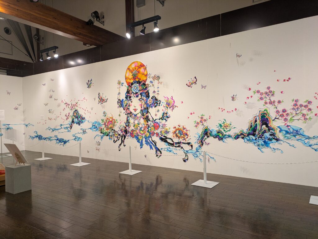 蝋けつ染の技術を用いて制作されたアイドル・女神を表現した作品などが多数展示されています。