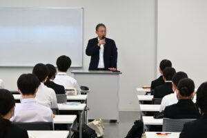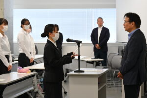 お話しいただき、最後に「よい経験ができるようしっかりと頑張ってください。」とお言葉をいただきました。