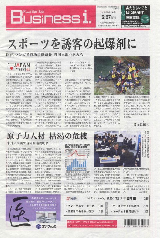Fuji Sankei Business I の1面と3面にも記事が掲載されました!