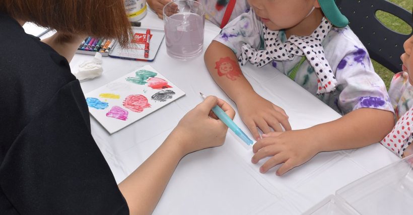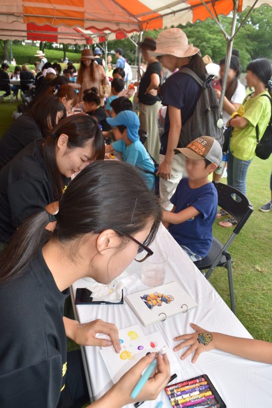 8月4日(金)には毎年恒例の子どもみこしまつりも行われ、短期大学部 アート・デザイン学科の学生もフェイスペイント担当として参加して参りましたよ~!!