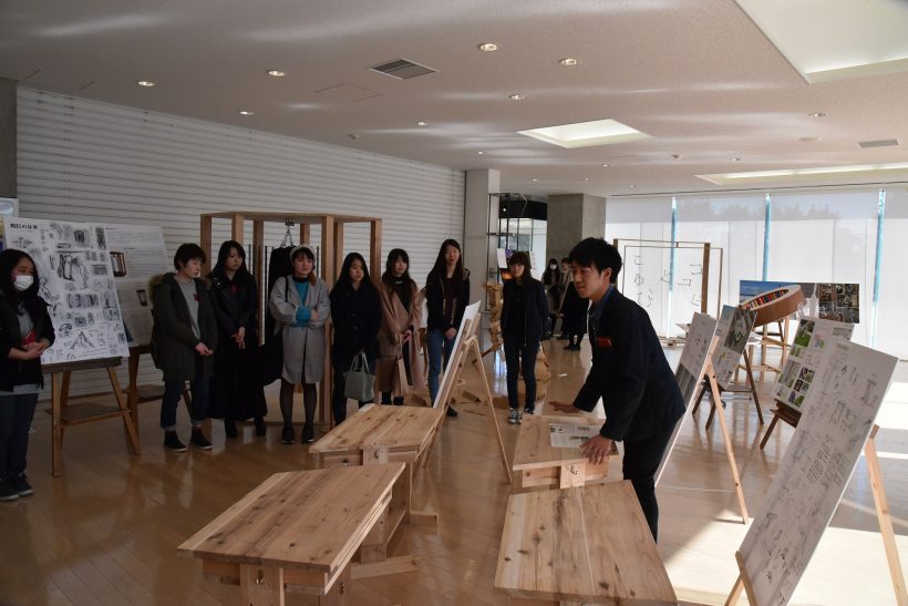 写真はインテリア・空間デザイン分野の講評会なのですが、他分野の学生さんも沢山参加していた姿が印象的でした。素晴らしい姿勢だと思います!