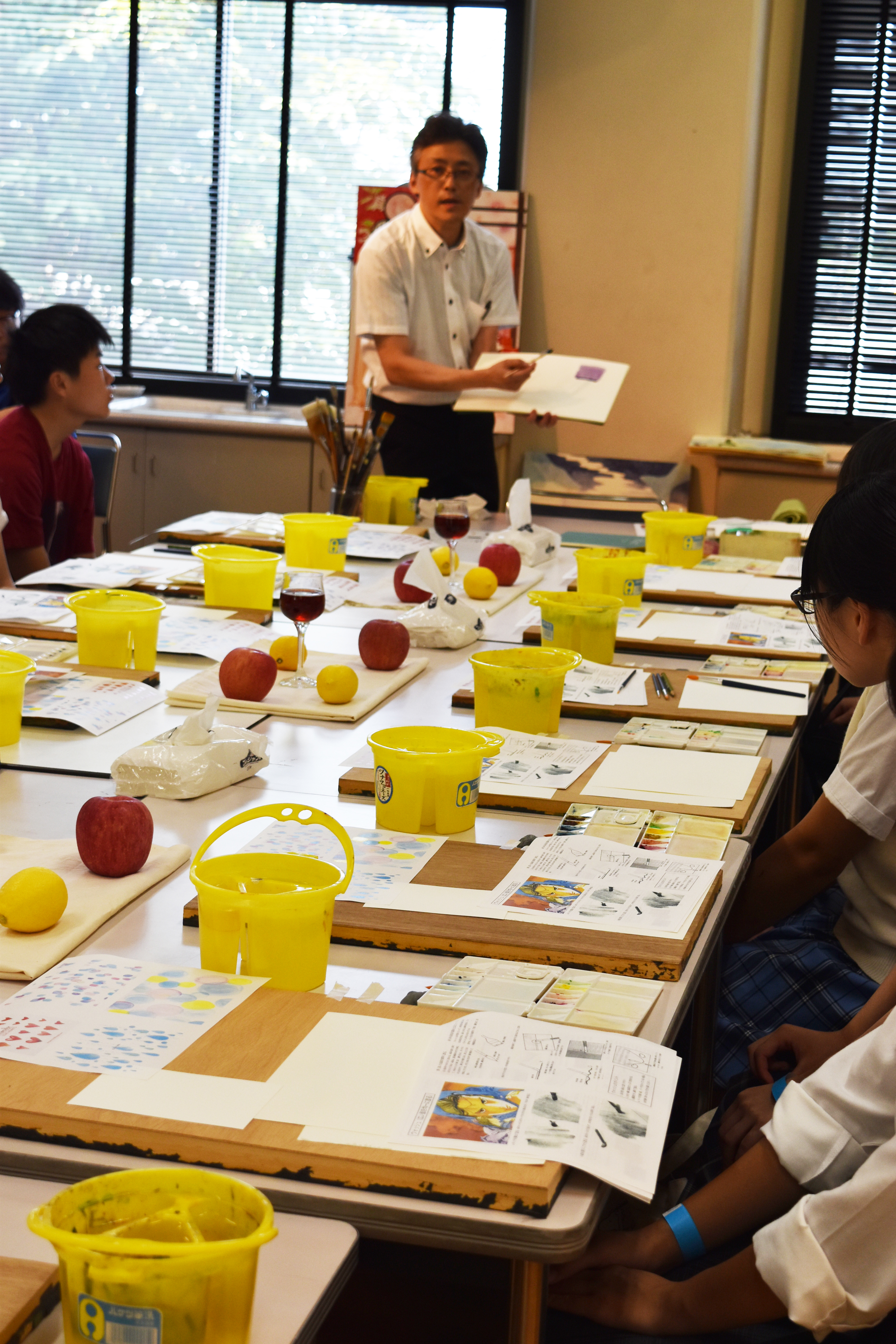果物やワイングラスをモチーフに、水彩絵の具の技法を学びます!