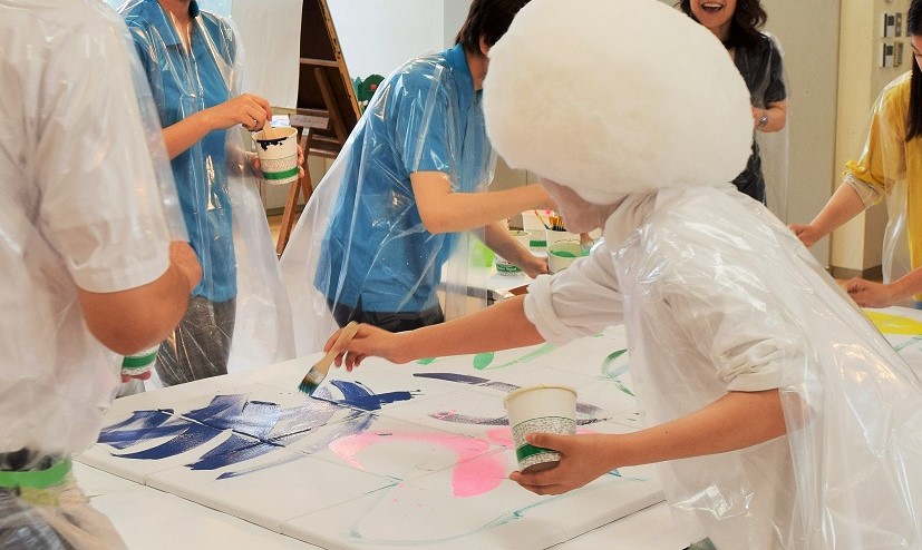 新しく開かれた講座「ダイナミックドローイング」では参加者と学生スタッフが一丸となって1つのアート作品を生み出しました★