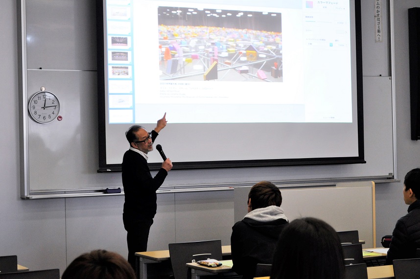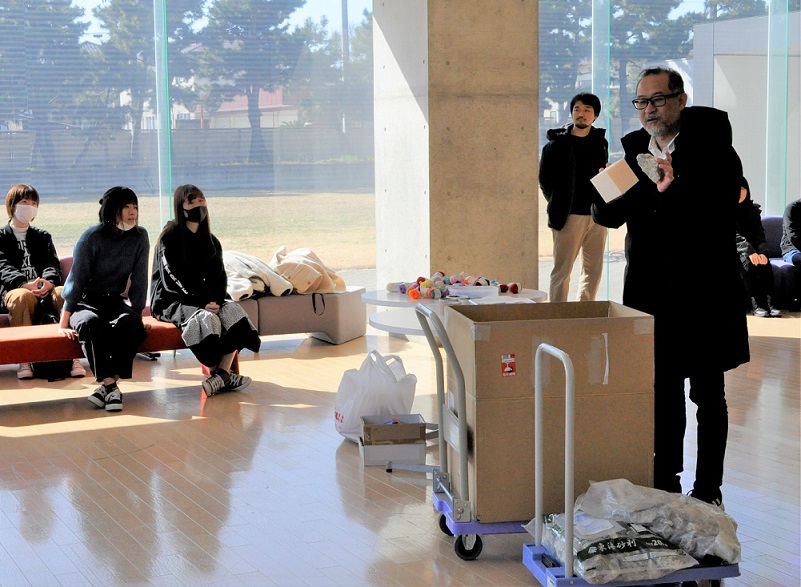 最初に講義として、これまでの作品についてや、4月にアーツ前橋で企画されている「レモンプロジェクト」についてお話をして頂きました!
