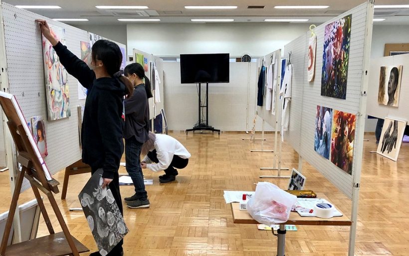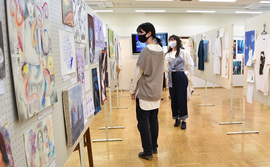 授業の課題作品や自主制作の作品を展示することでお互いに刺激を受け、