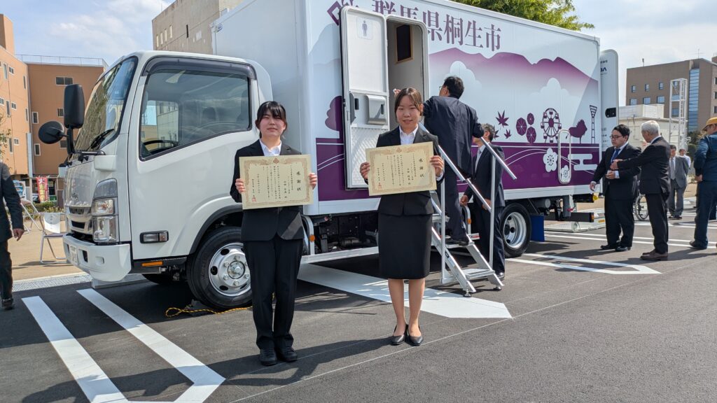 本学科の学生がデザインを手がけた、桐生市の「トイレトラック」がついに完成し、そのお披露目式が行われました。