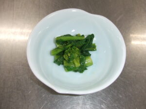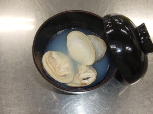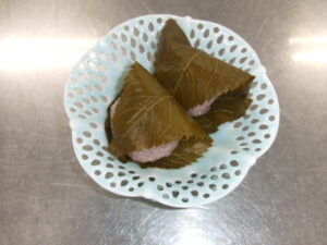 おひなまつりをお祝いして、はまぐりの潮汁・菜の花の辛し和え・桜餅(道明寺)が完成しました!