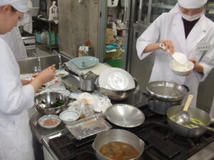 今回の調理実習Ⅰは一年生が学校給食を想定して考えた献立を実際に作る実習です!