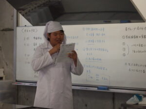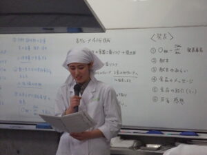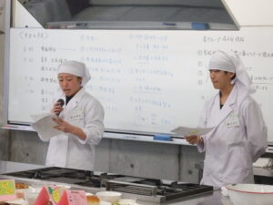 最後には各々が調べてまとめた献立のねらいや食品の紹介、そして実習に関しての感想と反省を発表しました。