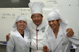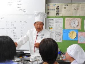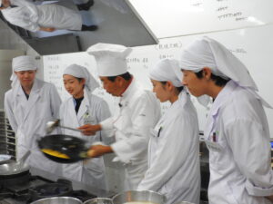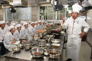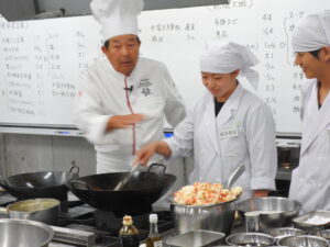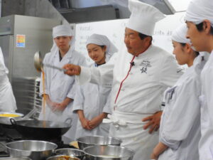 この日は、生活科学科2年生調理実習Ⅱの一環で、あの中華の鉄人・陳建一先生が本学9号館の調理実習室にて講義をしていただきました。