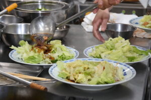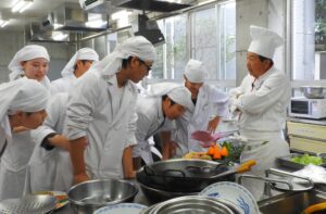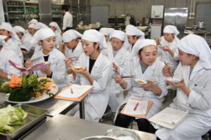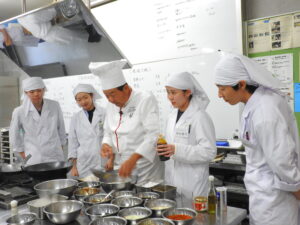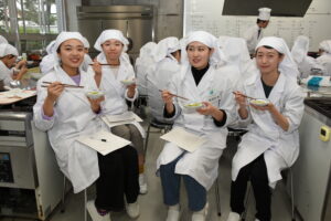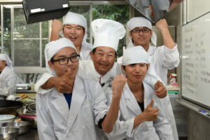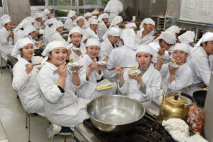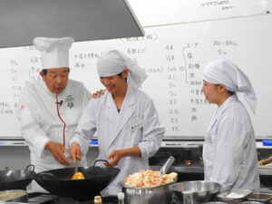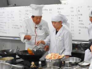 真剣にメモを取り講義を受けた学生達が本場の中華の味を体験しました。