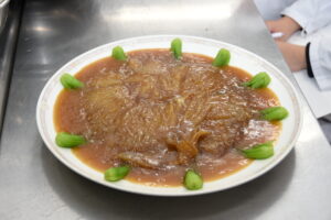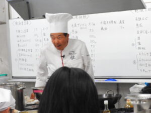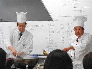 講義ではフカヒレの姿煮・大海老のチリソース・陳麻婆豆腐の3品目を目の前で実演。