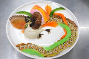 一緒に飾られた鳥も花も全部食べ物から出来てます!