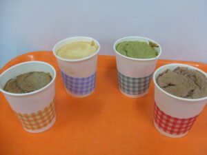 定番のプレーン、ココア、桑茶と紙コップシフォン限定で「黒ごま豆乳」も作りました!