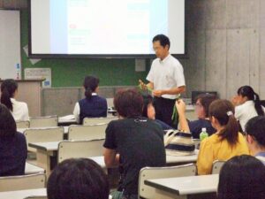 橋爪先生による生活科学科での学生生活や取得可能資格、就職などについての説明があります。