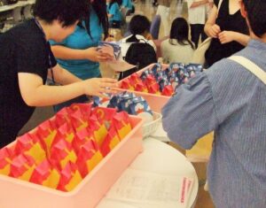 作ったメロンパンは、11号館で配布し、皆さまにお持ち帰りいただきました。