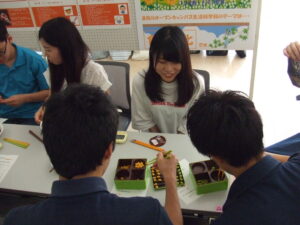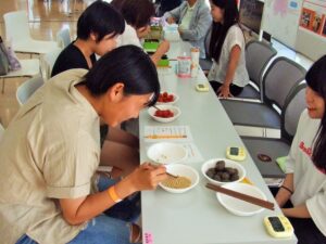先輩方から日本の食文化やお箸の作法などのレクチャーを受けたら、いざ実践です!