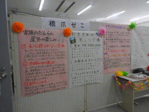 こちらでは2年生の各ゼミが研究展示を行っていました。