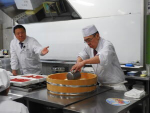 地域の食をリードされている昭和29年創業の寿司業界の老舗、美喜仁寿司の社長・坂入 勝先生と職人の大野 正義先生に