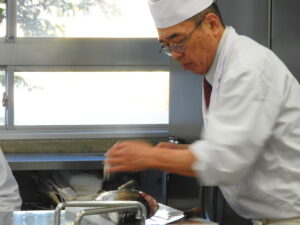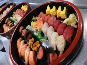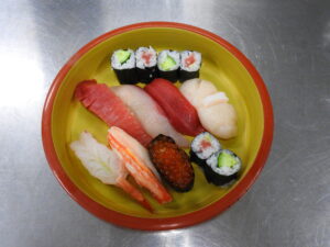 学生達と坂入先生が作っている間に、大野先生があっという間にたくさんのネタを使ったお寿司を握ってくださいました。