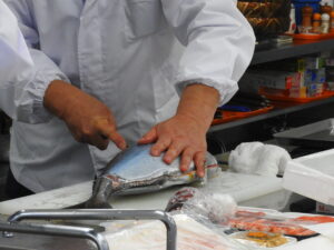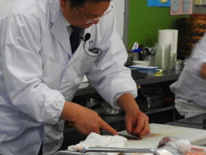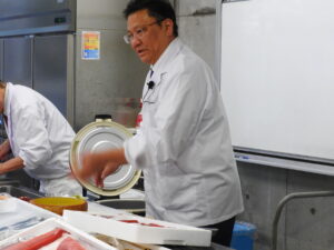 大野先生と目の前でシャリ・ネタの仕込みを披露してくださいました!
