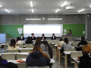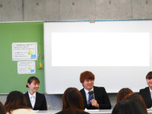 はじめに行われたのは就職・進学先が決まった2年生による就職・進学活動についての