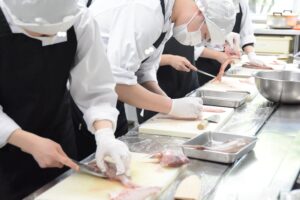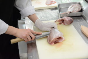学生たちはいつにも増して真剣な表情で、とても上手に真鯛を捌きました。