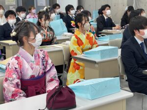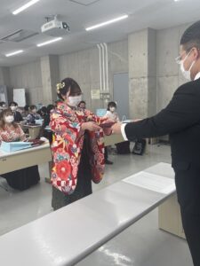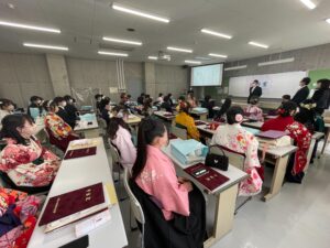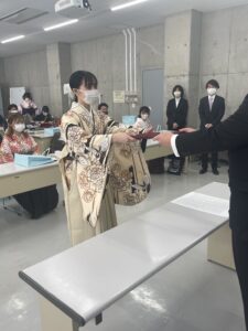その後、生活科学科は卒業生40名が905教室に集まり、学位記等伝達式を実施しました。