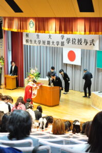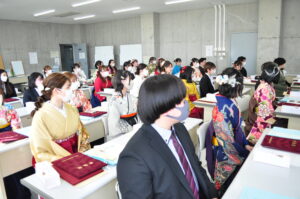 平成ホールでの学位授与式終了後、生活科学科学位記等伝達式を1年間過ごした905教室にて行いました。