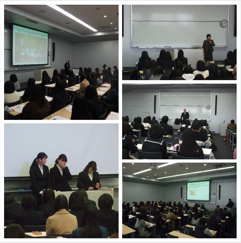 まず、学科の特徴やカリキュラムの説明があり、続いて大学の授業の特徴や学び方についてのお話がありました。