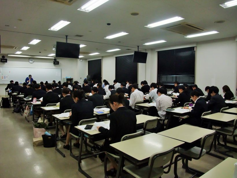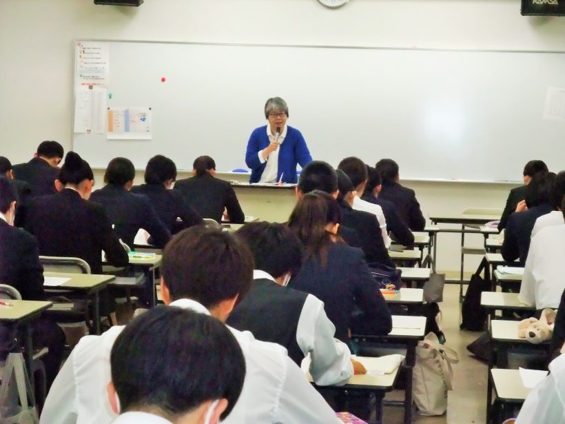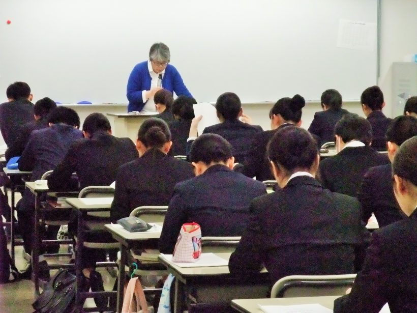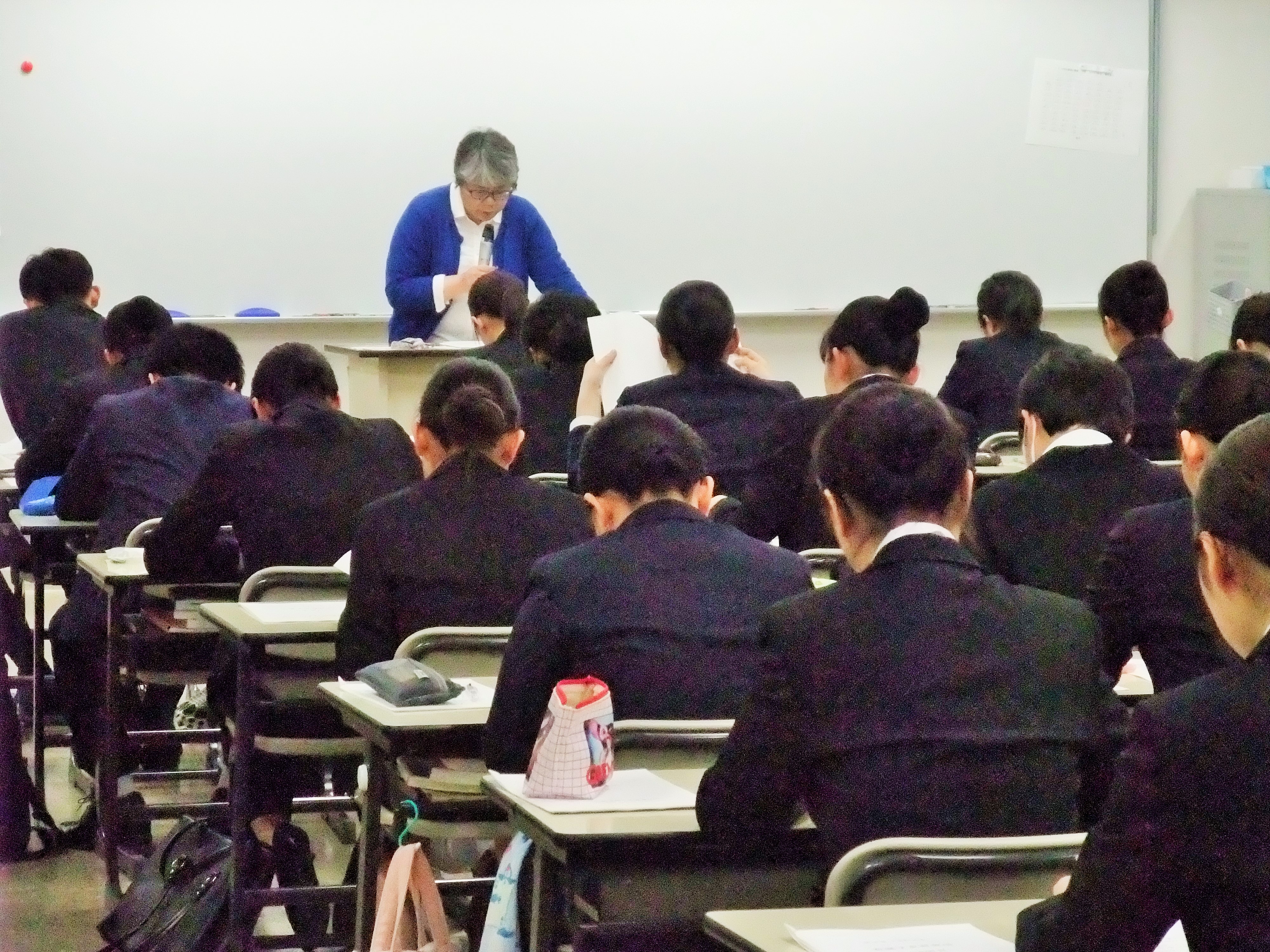 実習間近のため、緊張した様子で教員の話を聞いていました。