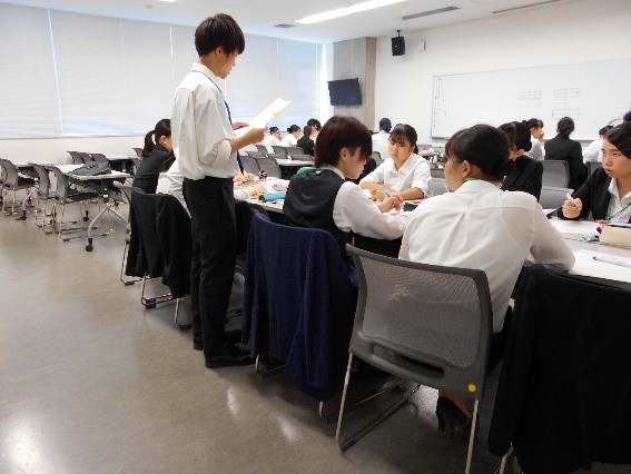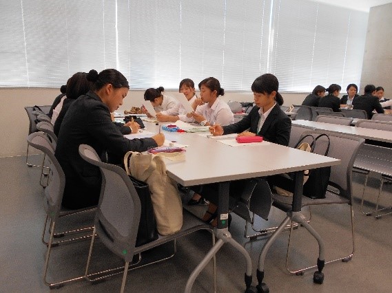 実習で学んだ内容の発表や、お互いの学科が目指している専門職について質問をし合っていました。