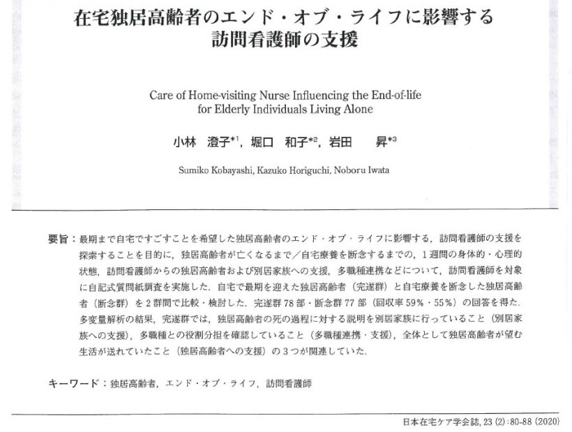 この研究は、そういう状況にある高齢者の最期のあり方や