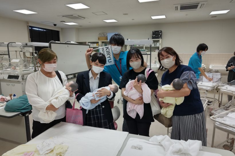 新生児モデル人形の抱っこ体験。お母様は感動していました!!