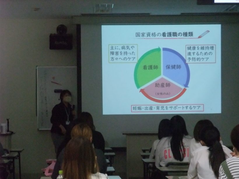 学科紹介では看護職についてお話ししました。看護職の種類、分かったかな?