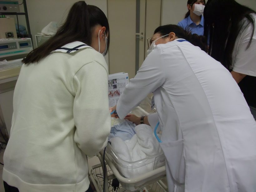 模擬講義では、赤ちゃんの心臓の音の聞き方を習いました。