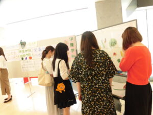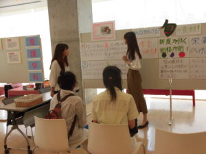 医療保健学部 栄養学科のミニ体験コーナーでは、「みんな知ってる?季節の食べ物」と題して、旬の食材の大切さを伝えられるよう、2年生が教材を作製し、ミニ栄養指導を行いました。