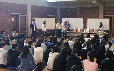 平成30年4月27日に大学の体育館で新入生歓迎会を実施しました。医療保健学部 栄養学科の新入生に楽しんでもらえるように2年生全員で企画を考えました!!