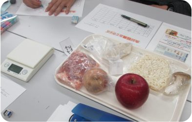 最後に「重量当てゲーム」の時に使用した食材を使って各班献立を立てました。
