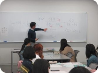 はじめに、I先生の「数学」の授業がありました。内容は「数字がもつ“意味”について」や「単位当たりの計算」など、管理栄養士として必須となるものでした。